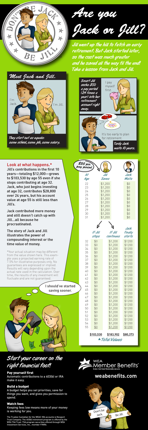 Take a look at our infographic to see what happens when you start saving early for retirement.