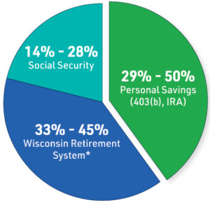 - One piece of the pie is your retirement income from the Wisconsin Retirement System (WRS) (33-%–45%).