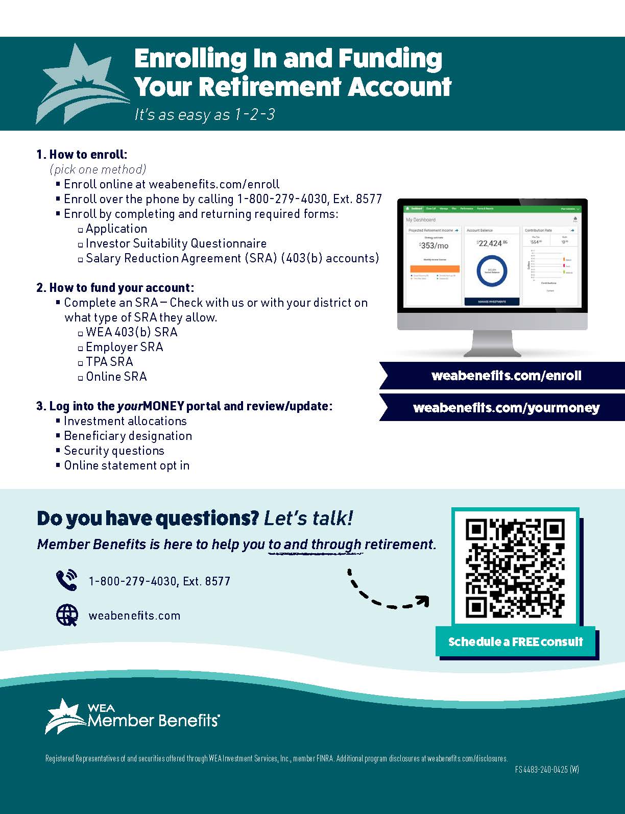 Click here to access a digital download of the Enrolling In & Funding Your Retirement Account flyer.