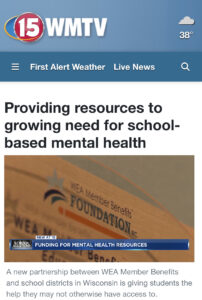 Madison, WI, January 30, 2024 – WMTV 15 Madison recently featured a story about the WEA Member Benefits Foundation and their school-based mental funding program. Reporter Mackenzie Davis spoke with Foundation representatives, Dave Kijek and Steve Goldberg, and Janet Thomas, Associate Director of Student Services from Sun Prairie School District.